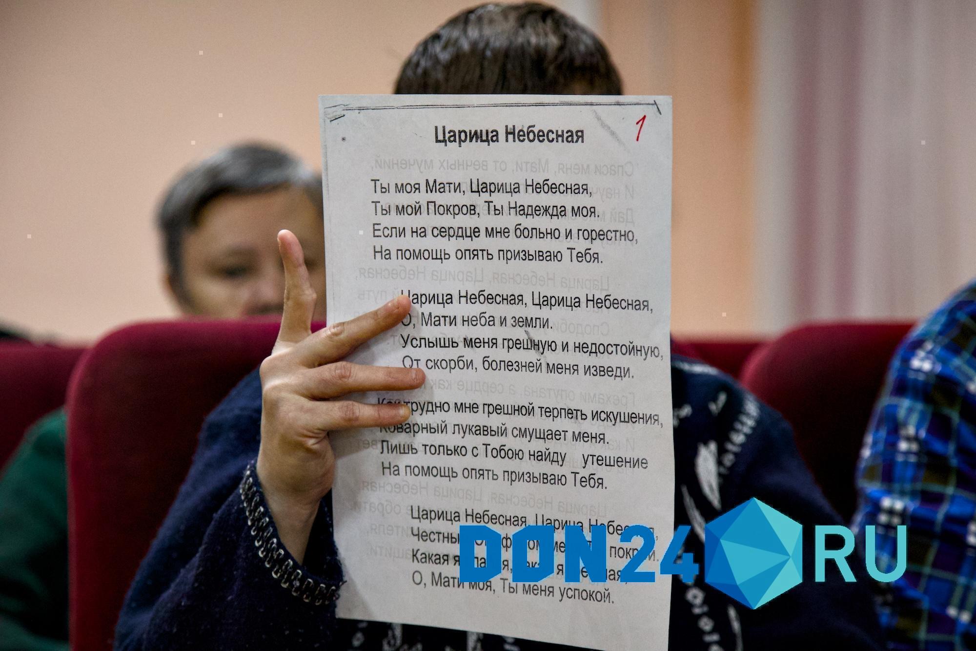 «Ты моя Мати, Царица Небесная, Ты мой Покров, Ты Надежда моя. Если на сердце мне больно и горестно, на помощь опять призываю Тебя», – поют подопечные в актовом зале учреждения.