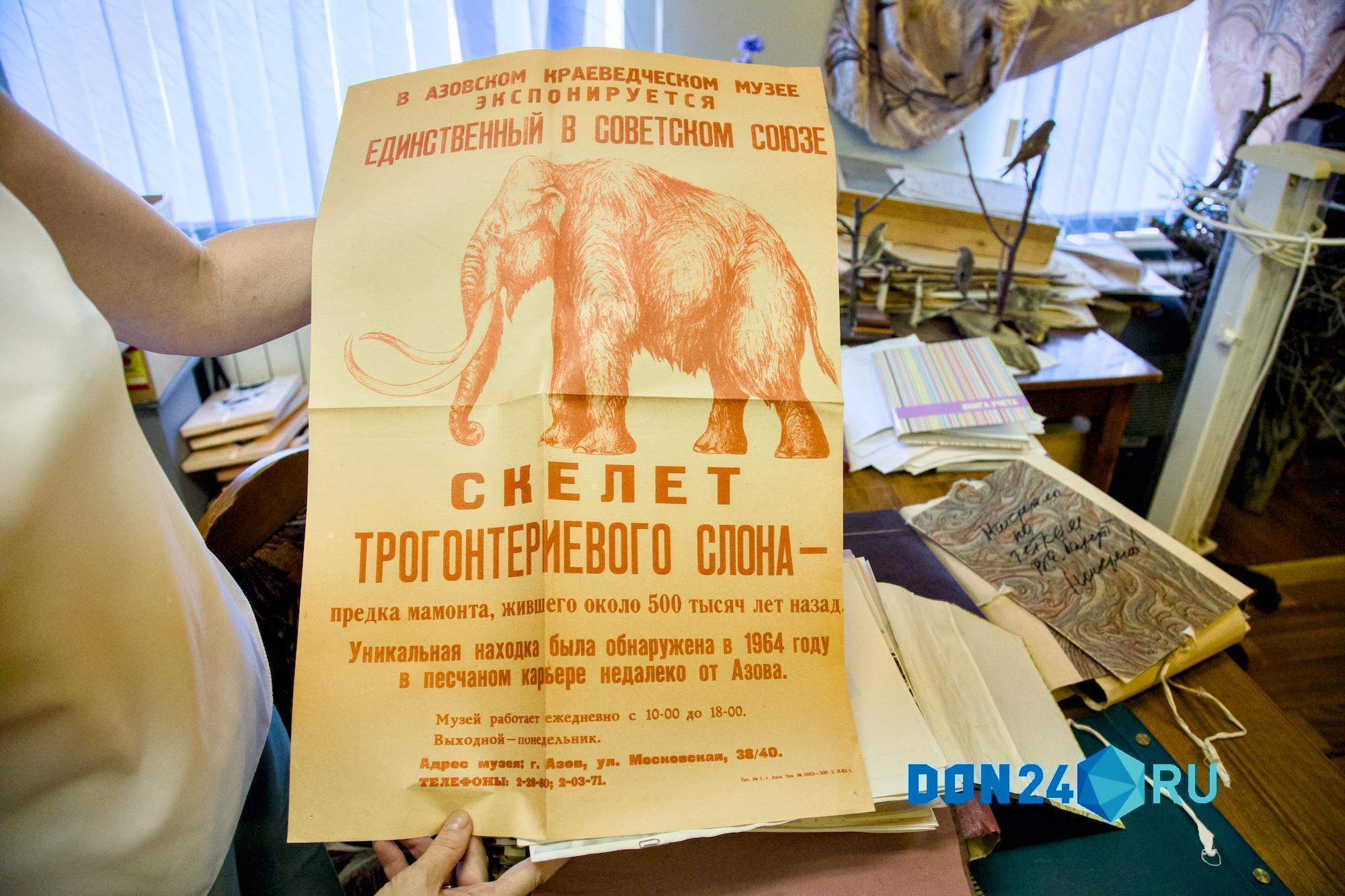 Оригинальные советские афиши и первые газетные статьи, приглашавшие в Азовский музей на осмотр уникального скелета