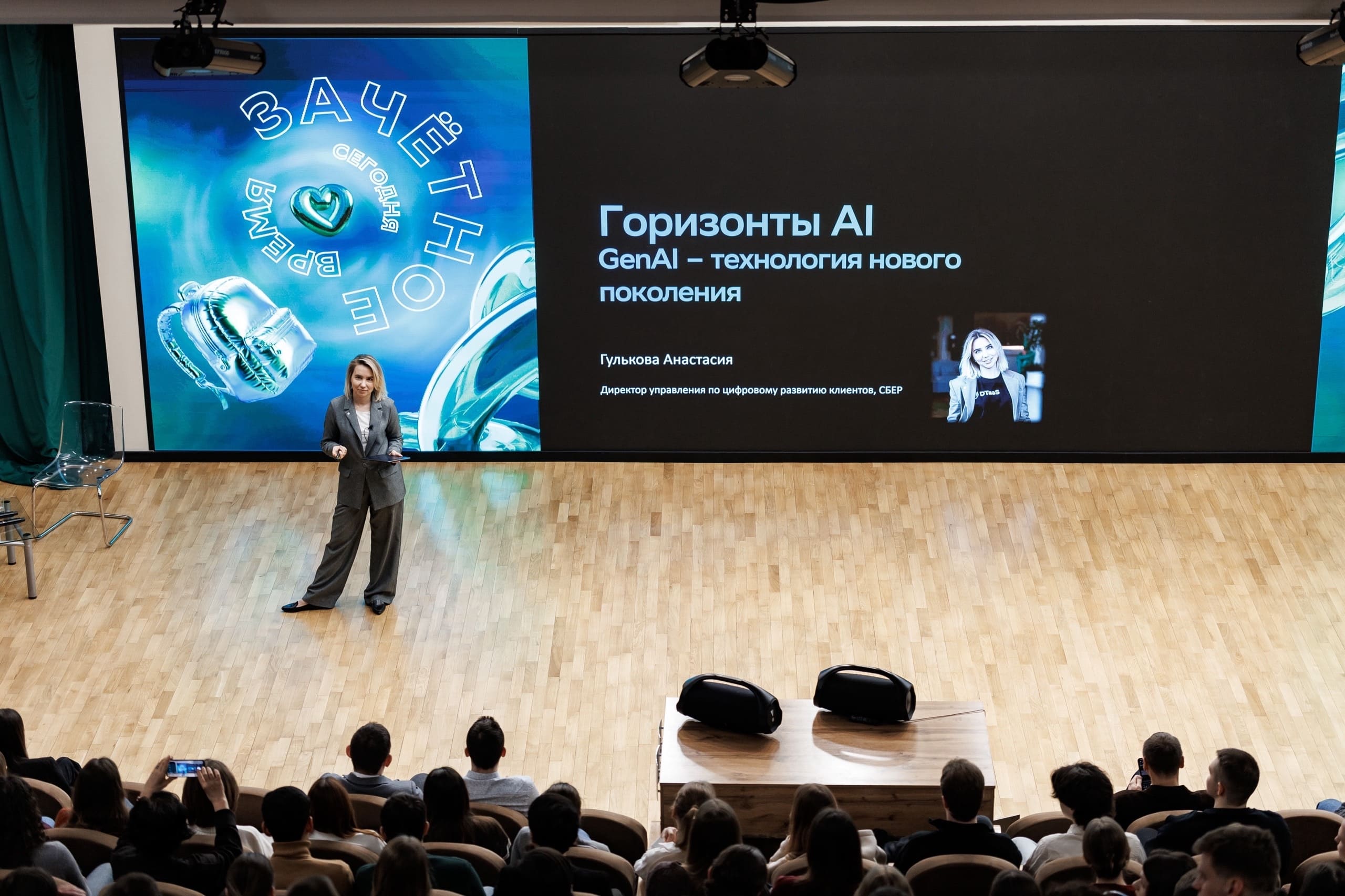 Программа встречи была насыщенной и практико-ориентированной. С интерактивной лекцией на тему возможностей Сбера как лидера и главного технологического драйвера выступила директор управления по цифровому развитию бизнеса Юго-Западного банка Анастасия Гулькова.