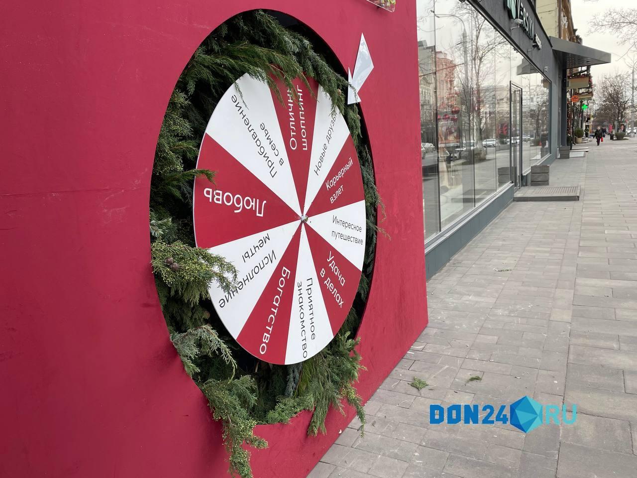 Также на главной улице Ростова, напротив торгового центра «Солнышко», находится колесо. Раскрутите его и узнайте, что ждет вас в следующем году: богатство, любовь или еще что хорошее. А потом с полученным предсказанием можно сделать памятный кадр.