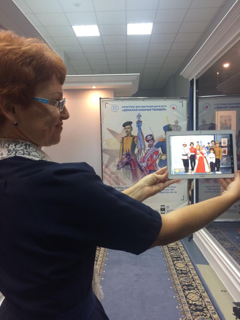 Как заманить туристов в музеи? Эксперты акцентируют: можно выставить уникальные экспонаты, но смотреть на что-то за толстым стеклом посетителям неинтересно. В культурно-выставочном центре ДГТУ «Донская казачья гвардия» музейщики с конца прошлого года используют технологию дополненной реальности. Организовали несколько «виртуальных точек». Став рядом, можно погрузиться в прошлое – с экрана планшета или смартфона увидеть оживших героев минувших эпох, снять видео с ними, заглянуть в парижский музей Лейб-гвардии казачьего полка.