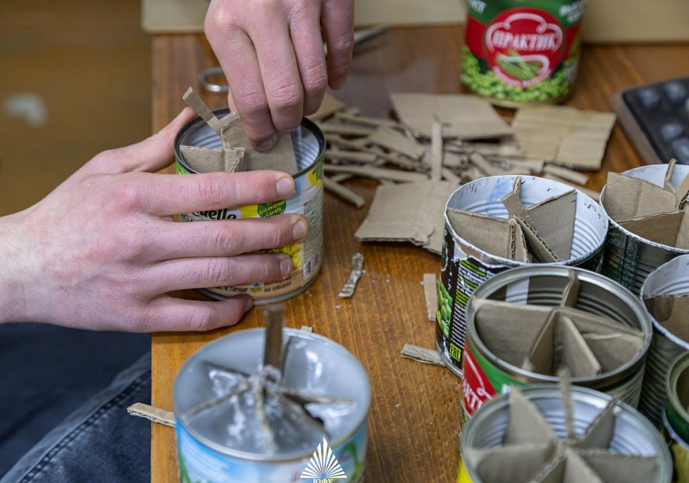 Ростовская область, 25 января 2024. DON24.RU. Окопные свечи для бойцов в зоне СВО делают студенты института компьютерных технологий и информационной безопасности ЮФУ. Как сообщили в вузе, ребята собирают банки, делают заготовки из гофрированного картона и заливают свечи парафином.