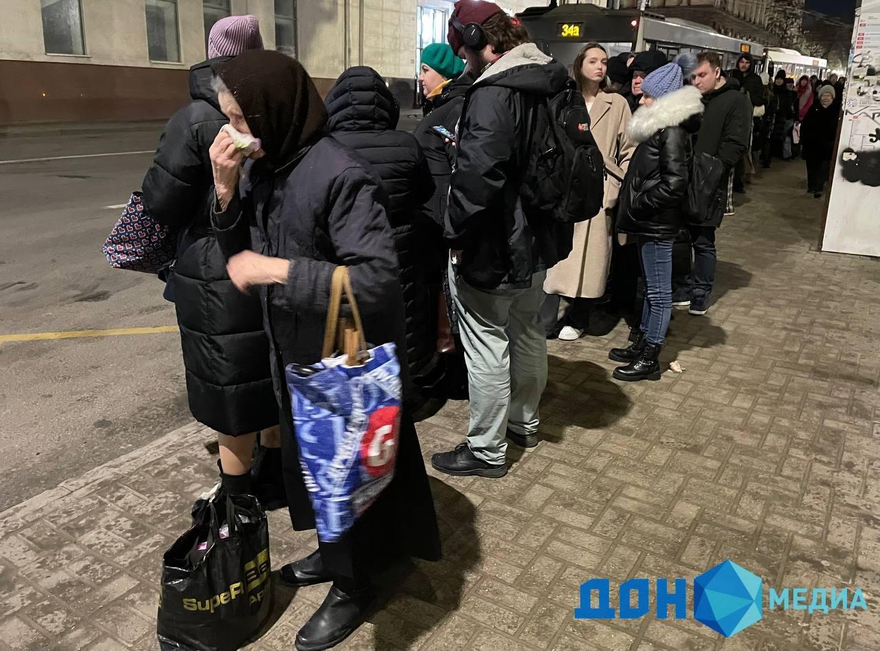 Ростовская область, 9 февраля 2024. DON24.RU. Проблему очередей на остановке на Центральном рынке Ростова в часы пик решить не удалось даже после повышения дептрансом стоимости проезда в транспорте.